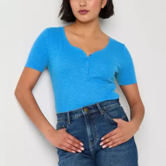 a.n.a Plus Ribbed Womens Short Sleeve Henley Shirt