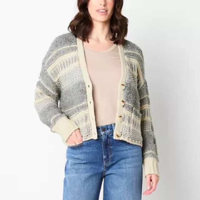 a.n.a Womens V Neck Long Sleeve Button Striped Cardigan