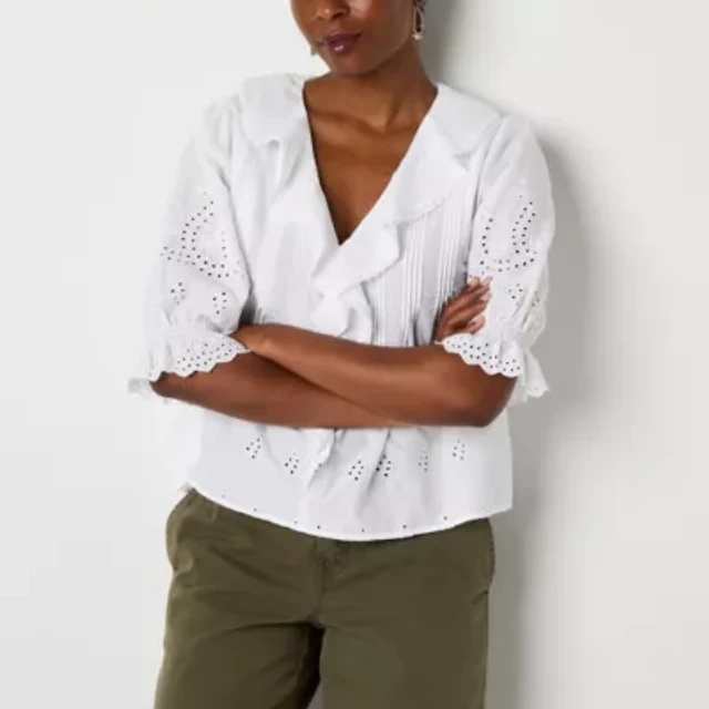 a.n.a Embroidered Womens Long Sleeve Blouse