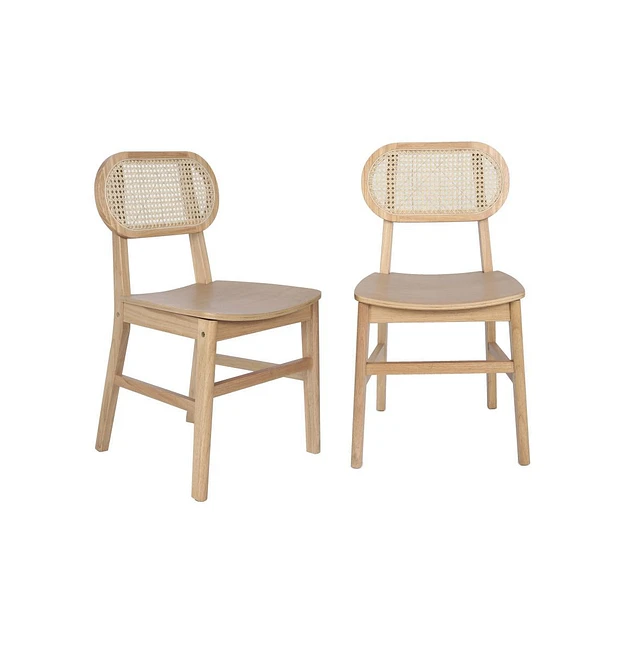 Analise Set Of 2 Cane Rattan Dining Chairs With Solid Wood Frames