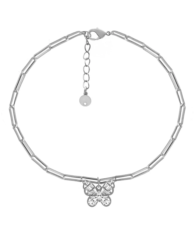 And Now This Cubic Zirconia Fine Silver-Plated or 18K Gold-Plated Butterfly Anklet