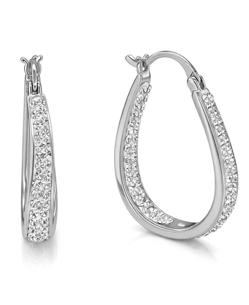 And Now This Crystal & Out Teardrop Hoop Earrings Silver Plate, Gold-Plate or Rose Gold Plate