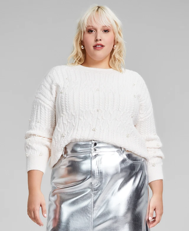 And Now This Trendy Plus Embellished Cable-Knit Sweater, Created for Macy's
