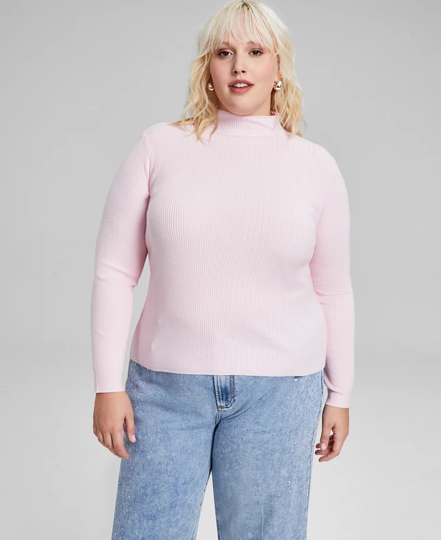 And Now This Trendy Plus Mock Neck Ribbed Sweater, Created for Macy's