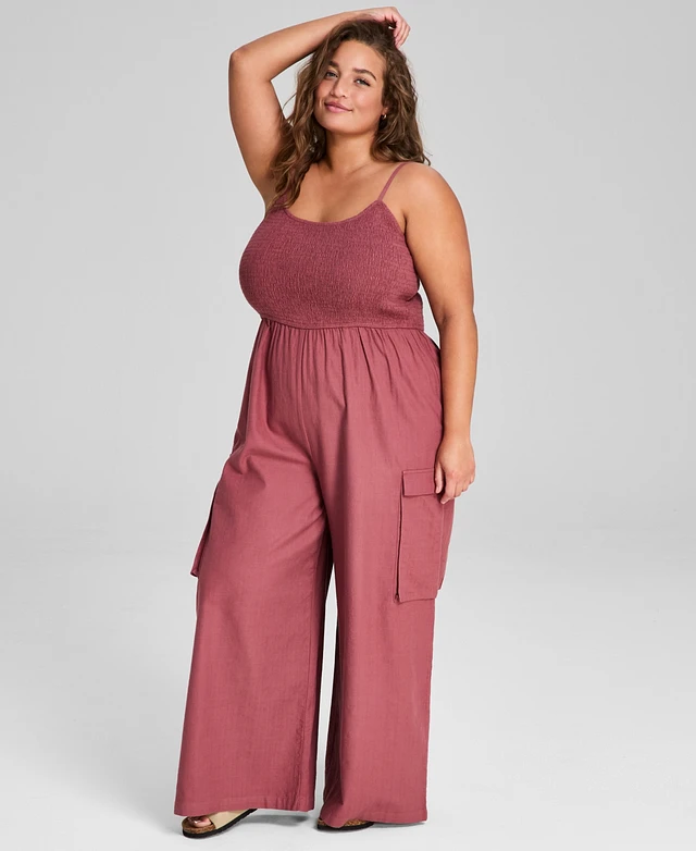 And Now This Trendy Plus Size Smocked Jumpsuit, Created for Macy's