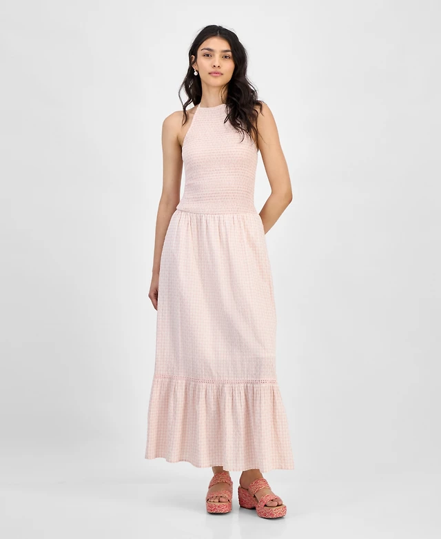 And Now This Women's Cotton Gingham Smocked Halter Maxi Dress, Exclusively at Macy's