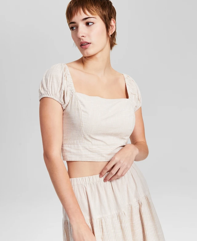And Now This Women's Off-the-Shoulder Striped Smocked-Back Puff-Sleeve Top, Exclusively at Macy's