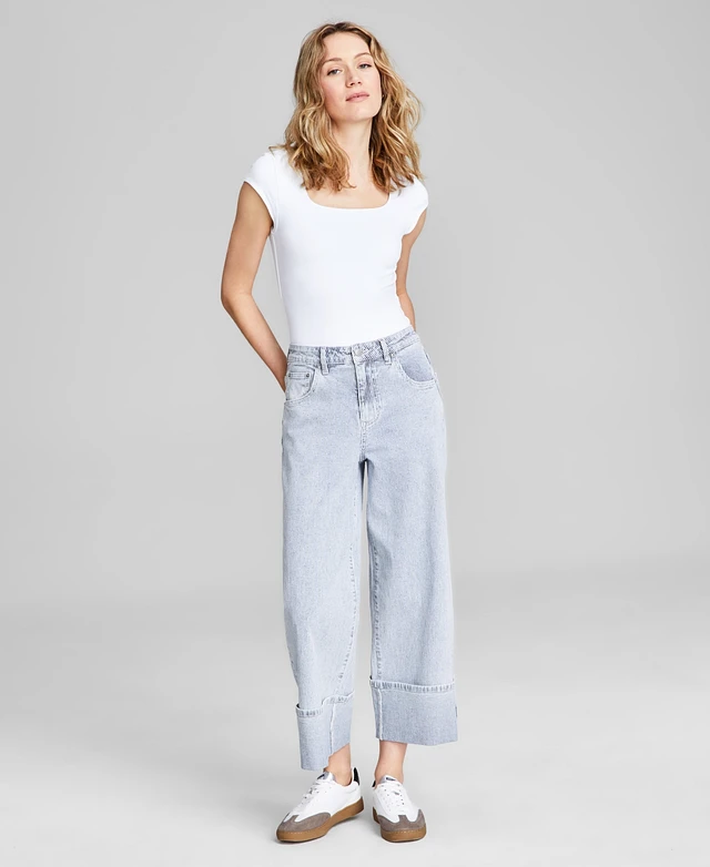 And Now This Women's Striped-Denim Cuffed Wide-Leg Jeans, Exclusively at Macy's