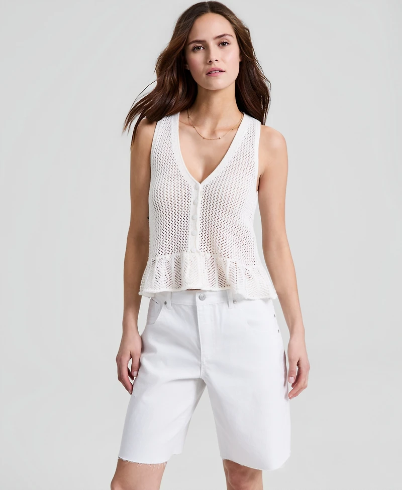 A ruffled peplum hem brings a flared silhouette to this sleeveless open-knit top from And Now This, making it a fun topper for jeans and shorts.