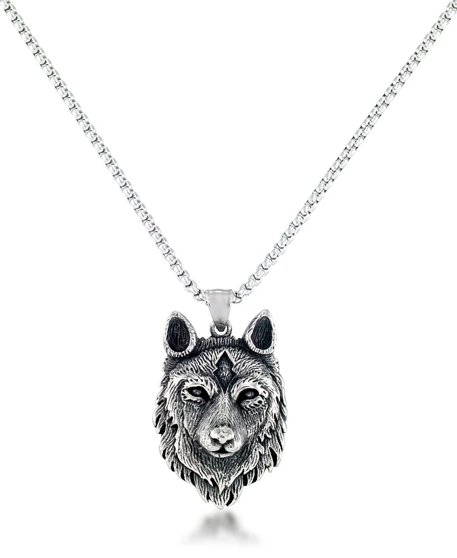 Andrew Charles by Andy Hilfiger Men's Wolf Head 24" Pendant Necklace in Stainless Steel