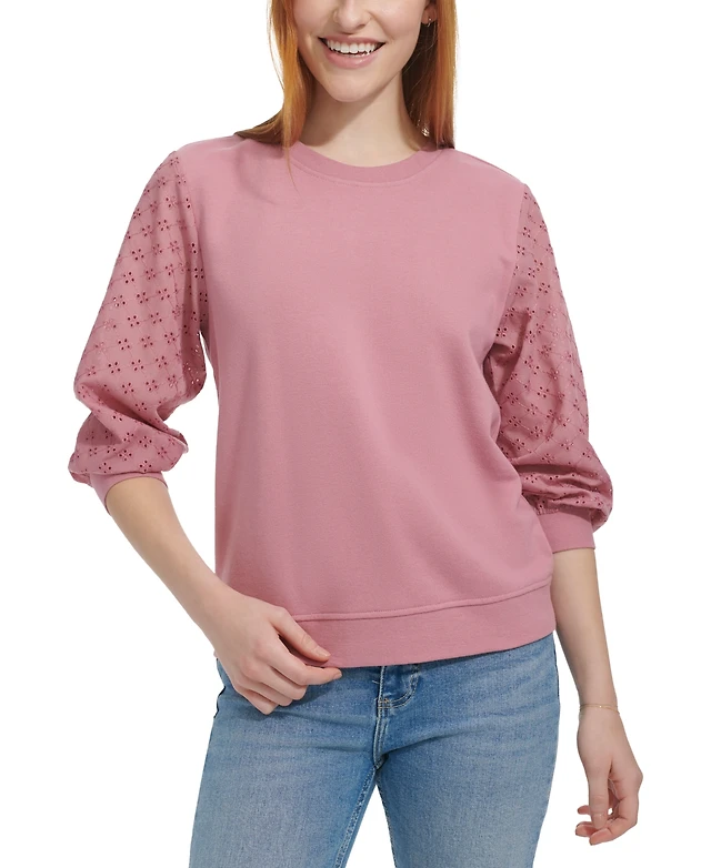 Andrew Marc Sport Women's Embroidered-Sleeve Top