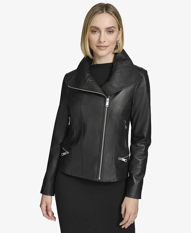 Andrew Marc Women's Felix Asymmetrical Moto Jacket With Wing Collar