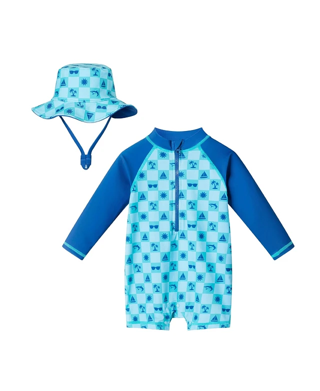 Andy & Evan Baby Boys Beach Theme Swim Romper w/Hat