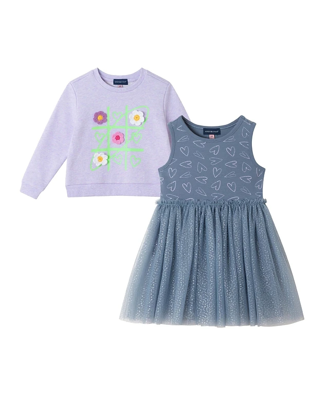 Andy & Evan Toddler Girls Toddler/Child Heart Print Jersey Dress and Sweatshirt Set