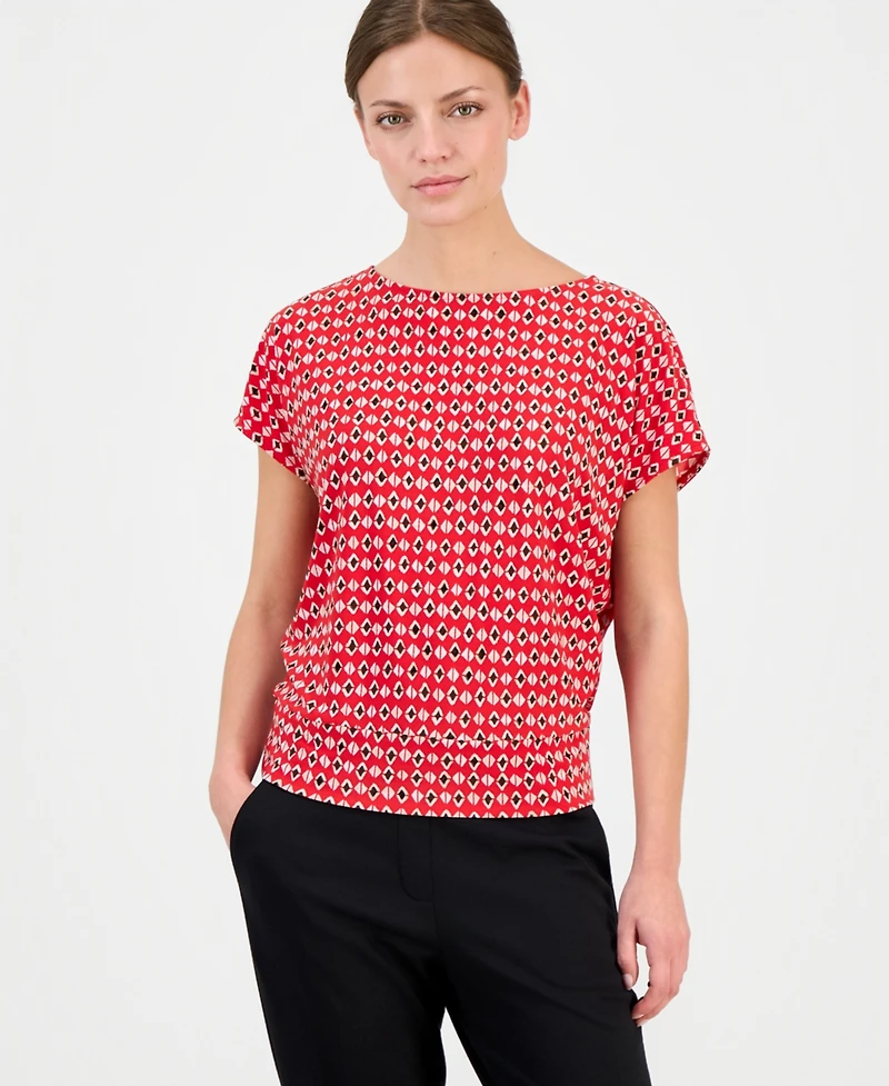 Anne Klein Essentials Petite Printed Boat-Neck Top in Ponce, PR