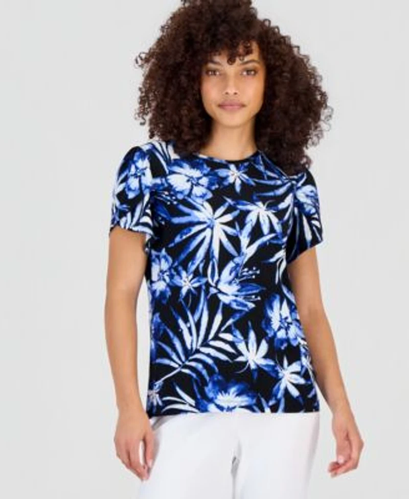 Anne Klein Essentials Petite Printed Tulip Sleeve Top in Ponce, PR