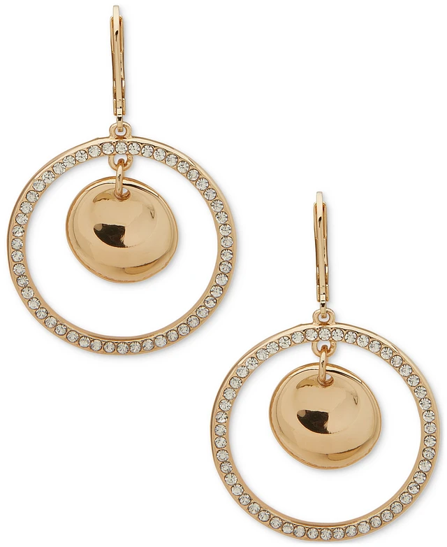 Anne Klein Gold-Tone Crystal & Polished Disc Orbital Drop Earrings