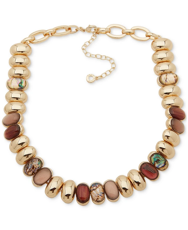 Anne Klein Gold-Tone Oval Stone Tiled Collar Necklace, 16" + 3" extender
