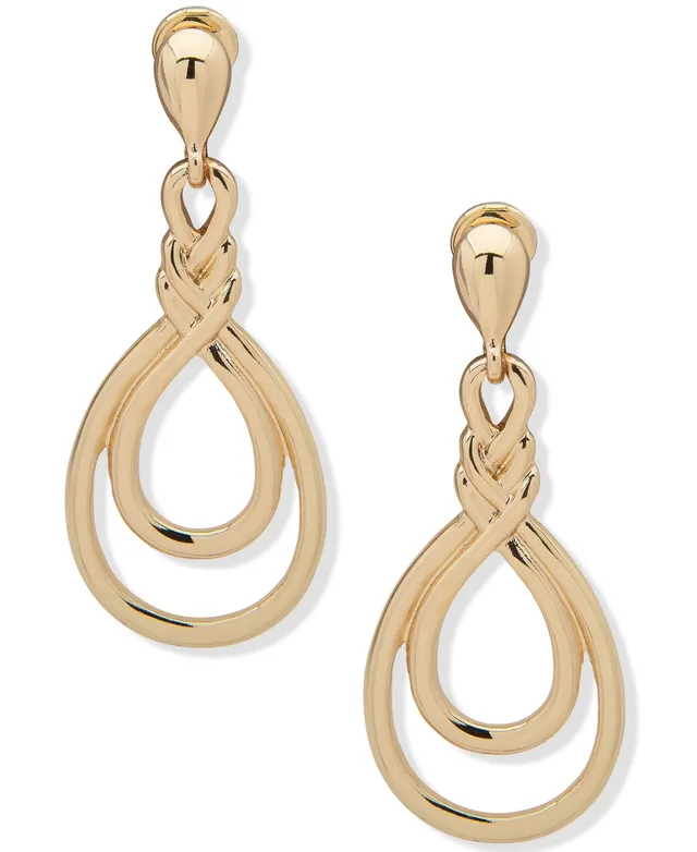 Anne Klein Gold-Tone Twisted Teardrop Clip-On Linear Drop Earrings