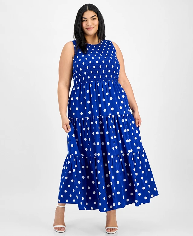 Anne Klein Plus Smocked-Bodice Tiered Dress