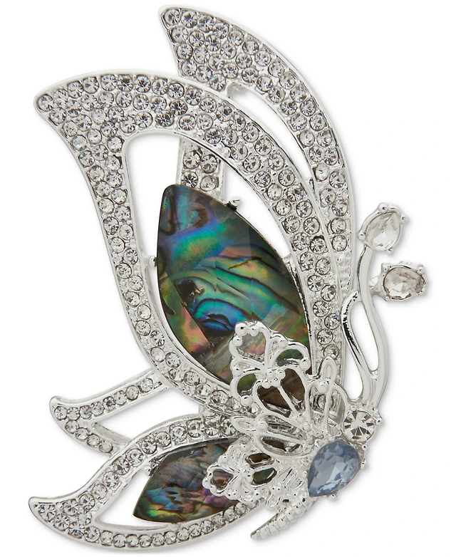 Anne Klein Silver-Tone Mixed Stone Butterfly Pin