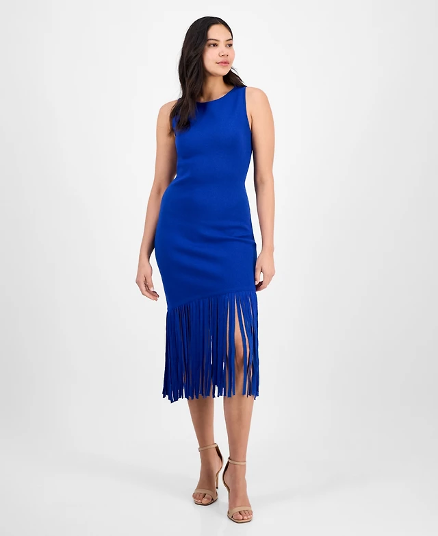 Anne Klein Women's Boat-Neck Asymmetric Fringe Dress