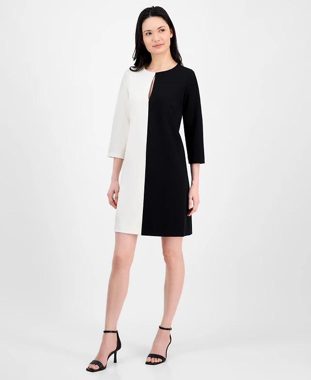 Anne Klein Women's Colorblocked 3/4-Sleeve Shift Dress