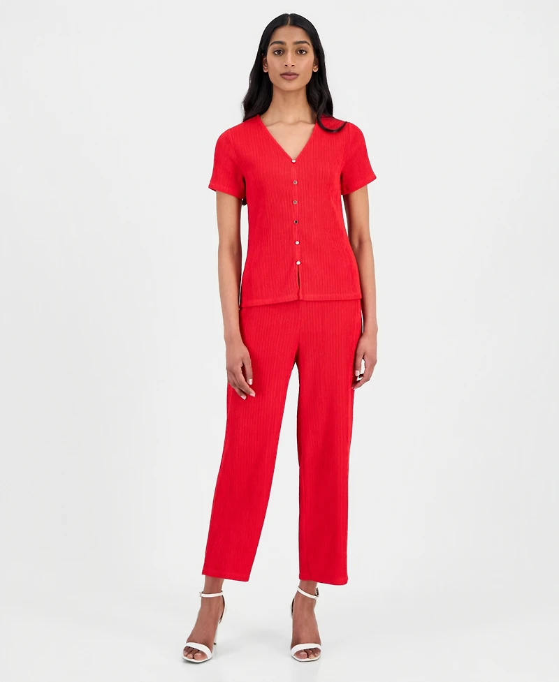 Anne Klein Women's Crinkle-Knit Pull-On Wide-Leg Pants