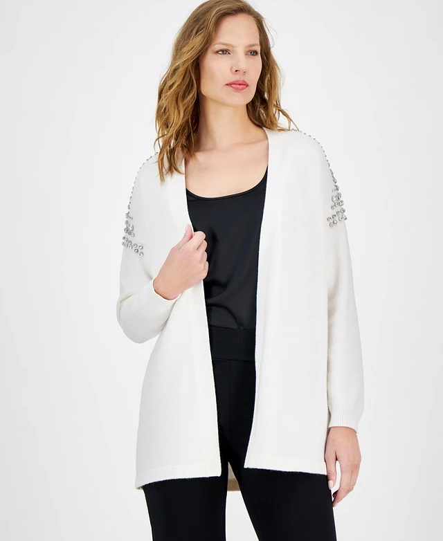 Anne Klein Women's Sequined Open-Front Mesh Kimono Cardigan