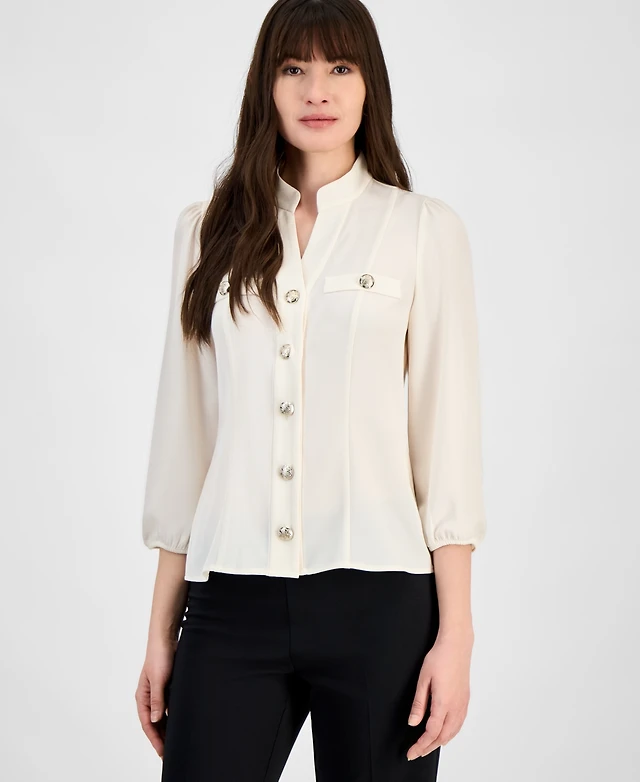 Anne Klein Women's Button-Front Long-Sleeve Shirt
