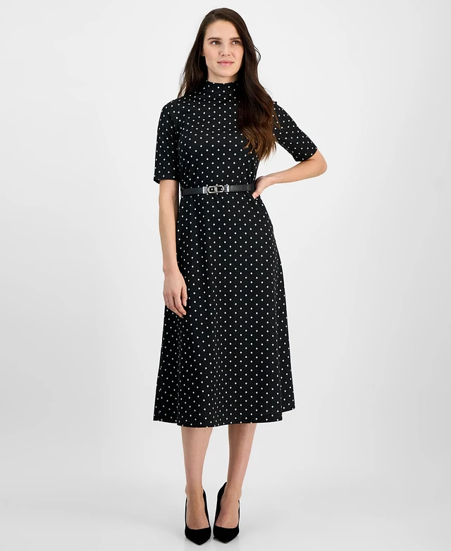 Anne Klein Women's Mock-Neck Elbow-Sleeve Belted Midi Dress