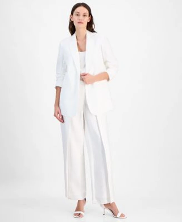 Anne Klein Womens Notch Collar 3 4 Sleeve Open Jacket Pull On Flyaway Wide Leg Pants