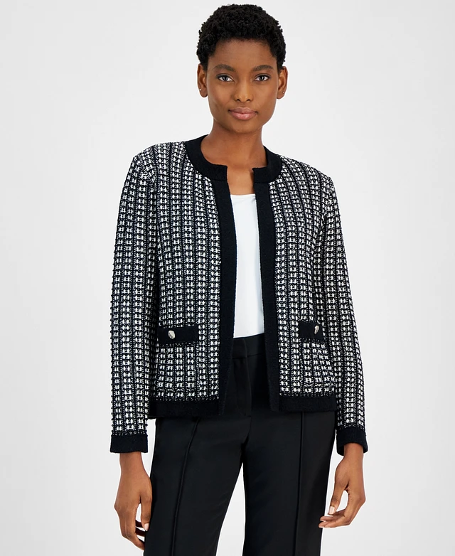Anne Klein Women's Herringbone Open-Front Blazer