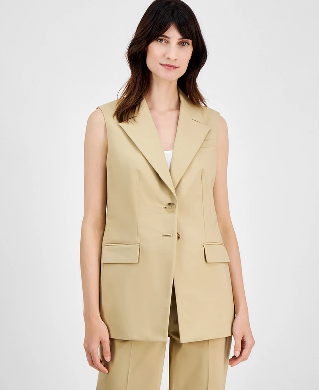 Anne Klein Women's Sleeveless Tie-Waist Patch-Pocket Jacket