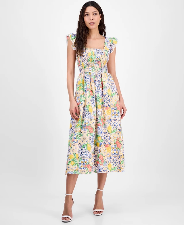Anne Klein Women's Smocked Ruffled-Strap Midi Dress