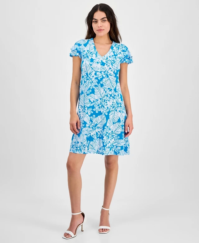 Anne Klein Women's Printed Double Flutter-Sleeve Mini Dress