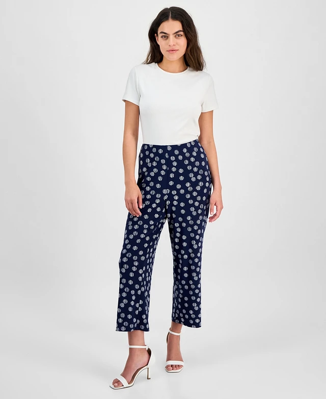 Anne Klein Women's Printed Pull-On Cropped Pants