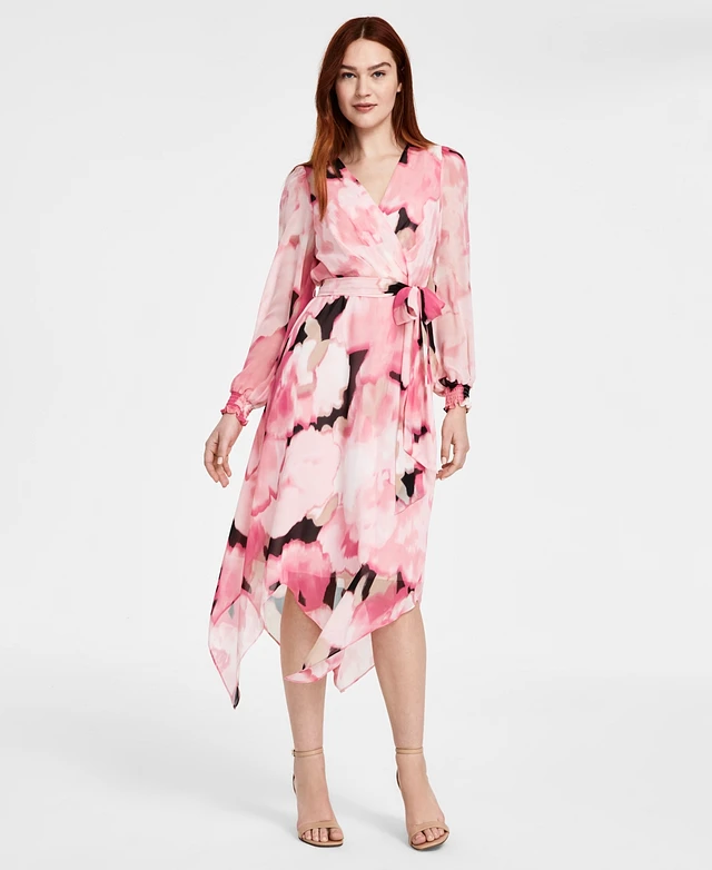 Anne Klein Women's Printed Smocked-Cuff Midi Dress