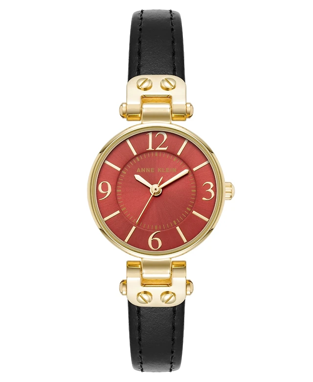 Anne Klein Women's Quartz Black Essential Leather and Gold-Tone Alloy Metal Strap Watch, 26mm