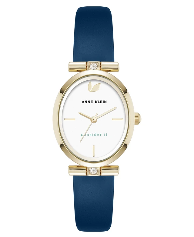 Anne Klein Women's Quartz Oval Light Blue Polyurethane Leather and Gold-Tone Metal Alloy Watch, 23mm