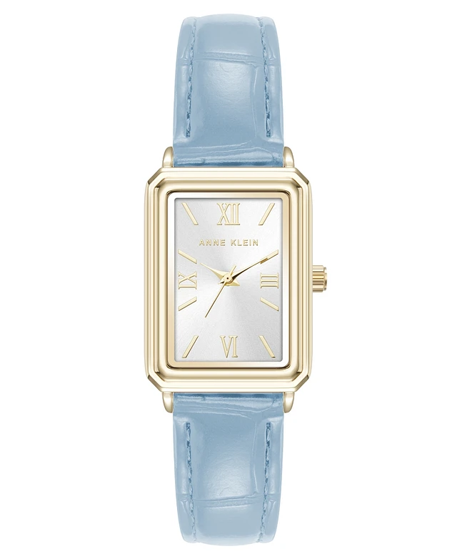 Anne Klein Women's Quartz Casual Light Blue Polyurethane Leather and Gold-Tone Metal Alloy Watch, 25mm