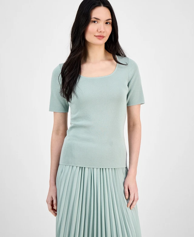 Anne Klein Women's Printed Boat Neck Short-Sleeve Top