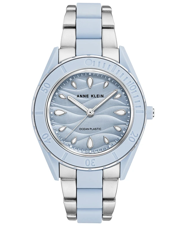 Anne Klein Women's Silver-Tone and Light Blue Solar Ocean Work Plastic Bracelet Watch, 38.5mm