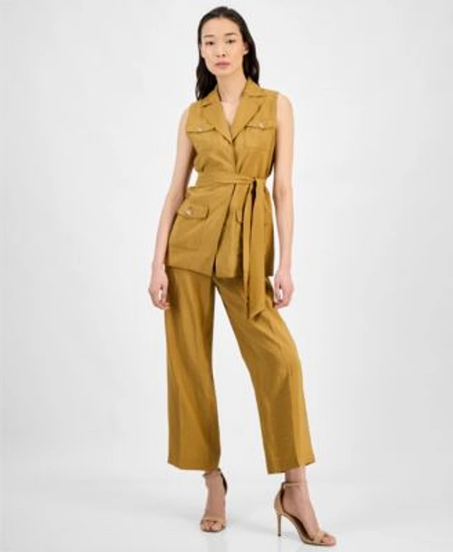 Anne Klein Womens Sleeveless Tie Waist Patch Pocket Jacket Pull On Wide Leg Ankle Pants