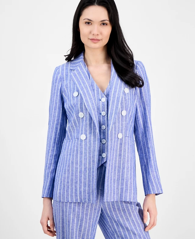 Anne Klein Women's Striped Faux-Double-Breasted Blazer