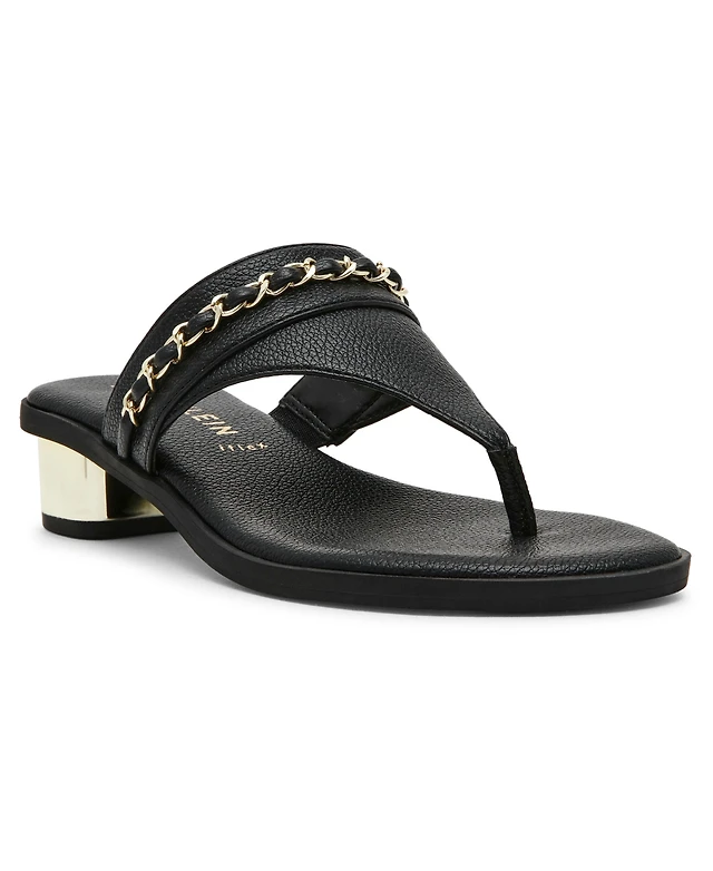 Anne Klein Women's Taylor Block Heel Thong Chain Dress Sandals