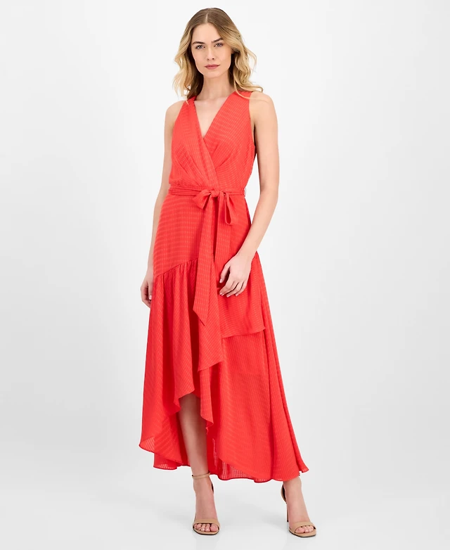 Anne Klein Women's Tie-Waist Ruffled-Hem Satin Maxi Dress