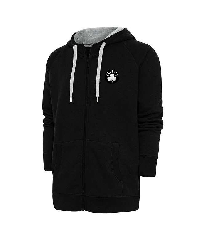 Antigua Men's Black Boston Celtics Metallic Logo Victory Raglan Full-Zip Hoodie
