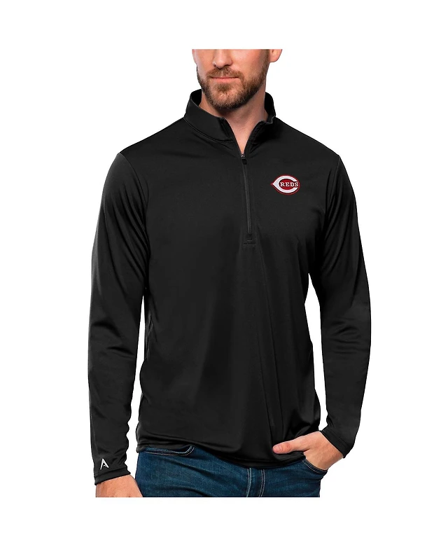 Antigua Men's Black Cincinnati Reds Tribute Quarter-Zip Pullover Top