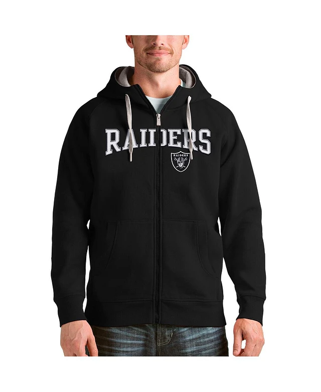 Antigua Men's Black Las Vegas Raiders Wordmark Victory Full-Zip Hoodie